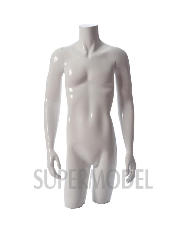 This Half Body Male Mannequin Stand is made of fiberglass material,Both hands down vertically.It looks like leisure style.